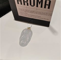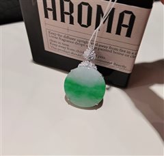 18K白金钻石镶满绿翡翠蛋面吊坠