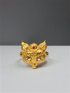 古法手工錾刻(J六)镶嵌莫桑钻彩锆狐狸面具戒指