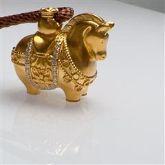 古法手工錾刻(J六)镶嵌莫桑钻木马吊坠