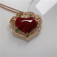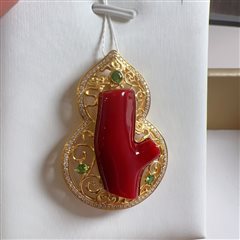 18K黄金钻石彩宝镶天然阿卡牛血红珊瑚枝葫芦吊坠胸针两用