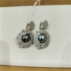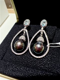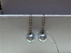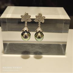 纯银镶嵌天然海水大溪地珍珠耳坠(11-12mm)