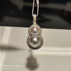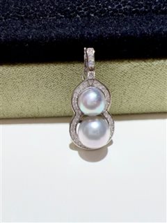 纯银镶嵌天然海水真多麻珍珠吊坠(6-8mm)
