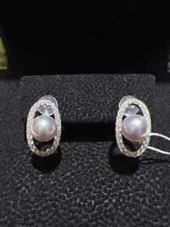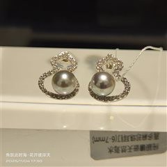 纯银镶嵌天然海水真多麻珍珠耳坠(7-8mm)