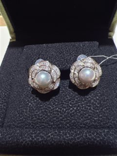 银镶天然海水马贝珍珠耳钉