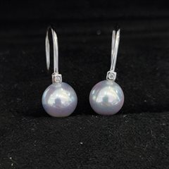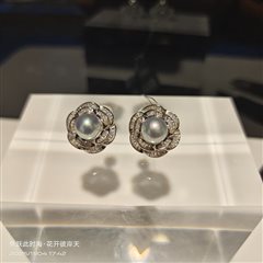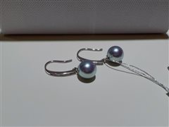 纯银镶嵌天然海水真多麻珍珠耳坠(8-9mm)