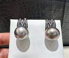 纯银镶嵌天然海水大溪地珍珠耳扣(11-12mm)