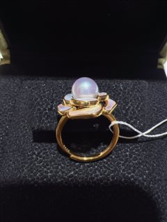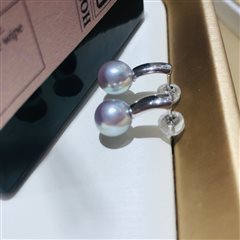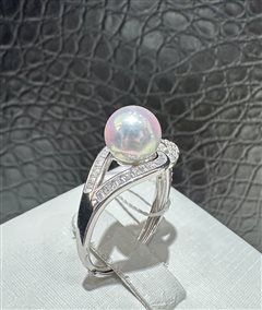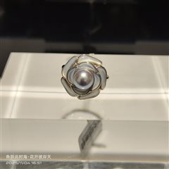 纯银镶嵌天然海水真多麻珍珠戒指(7-8mm)