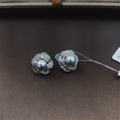 纯银镶嵌天然海水真多麻珍珠耳钉(6-7mm)