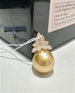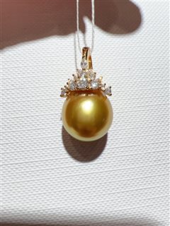 纯银镶嵌天然海水南洋金珍珠吊坠(12mm)