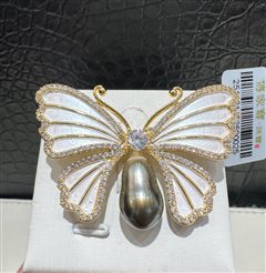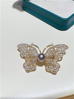 天然海水真多麻珍珠蝴蝶胸针(7-8mm)
