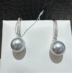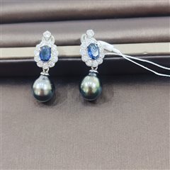 纯银镶嵌天然海水大溪地珍珠耳坠(10-11mm)