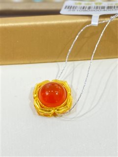 18K黄金镶天然孩儿面粉珊瑚蛋面路路通