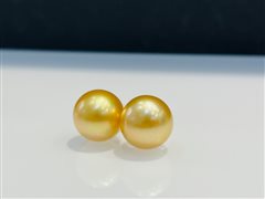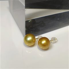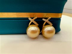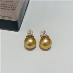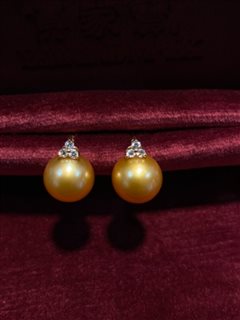 18K黄金钻石镶天然海水南洋金珍珠耳钉(12-13mm)