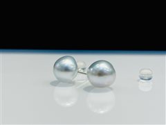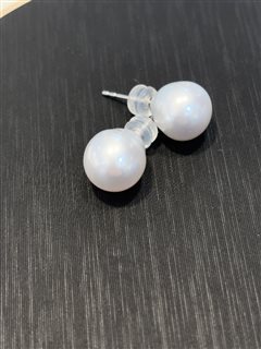 18K白金镶天然海水澳白珍珠耳钉(10-11mm)配18K金硅胶耳堵