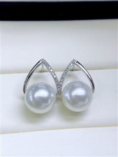 18K白金钻石镶天然海水澳白珍珠耳坠(11.5mm)配18K金硅胶耳堵