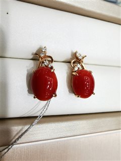 18K彩金镶阿卡红珊瑚(三钻)耳钉