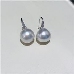 18K白金钻石镶天然海水澳白珍珠高跟鞋耳钩(13-14mm)