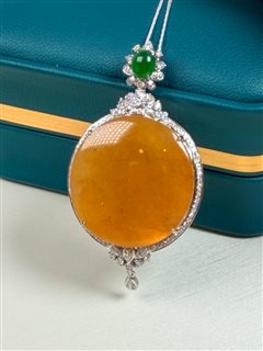 18K白金钻石镶黄翡圆牌