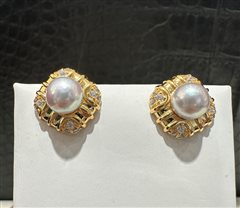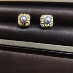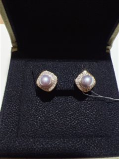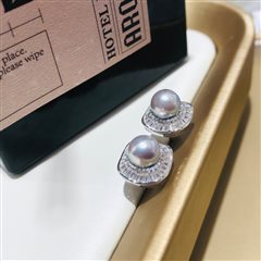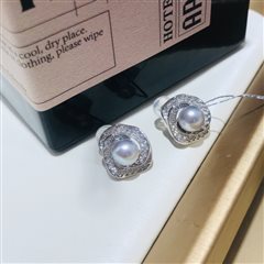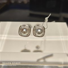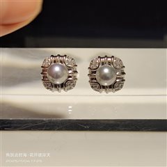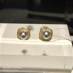 纯银镶嵌天然海水真多麻珍珠耳钉(7-8mm)