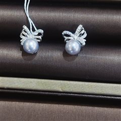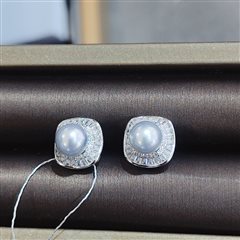 纯银镶嵌天然海水真多麻珍珠耳钉(6mm)