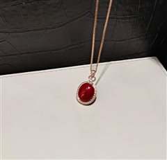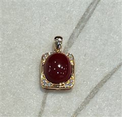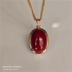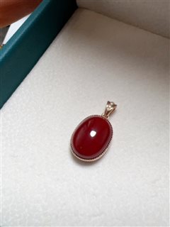 18K彩金钻石镶天然阿卡深牛血红珊瑚蛋面吊坠