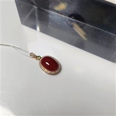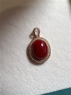 18K彩金钻石镶天然阿卡牛血红珊瑚蛋面吊坠