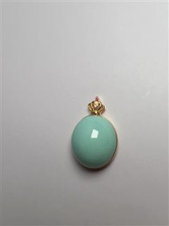 18K黄金钻石红宝镶原矿高瓷丫角山料松石蛋面吊坠