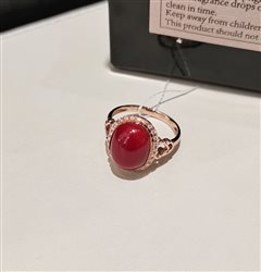 18K彩金镶天然阿卡牛红珊瑚蛋面戒指