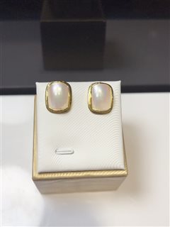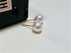 18K黄金镶天然海水Akoya珍珠厚金耳钉(8-8.5mm)