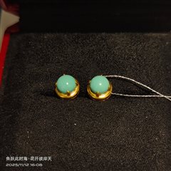 纯银镶嵌天然海水南洋金珍珠耳坠(13-14mm)