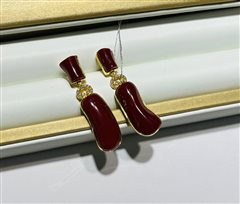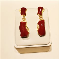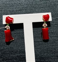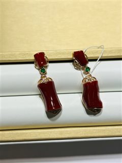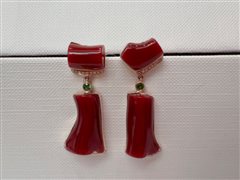 18K黄金钻石镶天然阿卡牛血红珊瑚枝耳坠