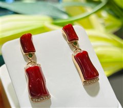 18K彩金钻石镶天然阿卡牛血红珊瑚枝耳坠