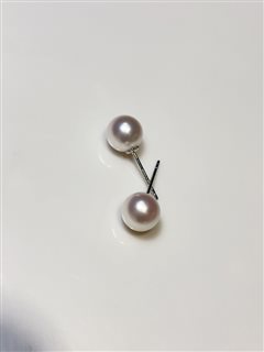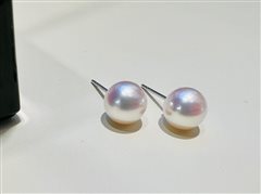 18K白金镶天然海水Akoya珍珠厚金耳钉(8-8.5mm)