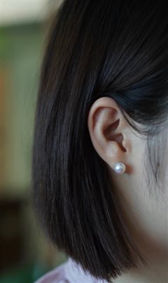 18K白金镶天然海水Akoya珍珠耳钉(9-10mm)