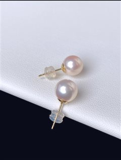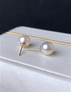 18K黄金镶天然海水Akoya珍珠耳钉(8-8.5mm)