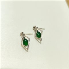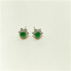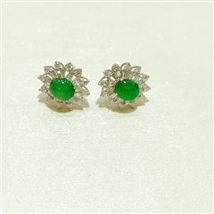 18K白金钻石镶满绿翡翠蛋面耳钉