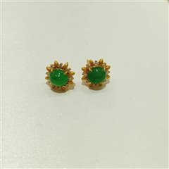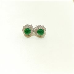 18K黄金钻石镶满绿翡翠蛋面耳钉