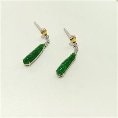 18K白金钻石镶满绿翡翠豆荚耳坠