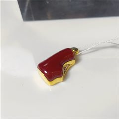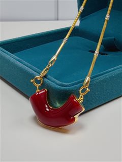 18K黄金镶天然阿卡牛血红珊瑚枝吊坠