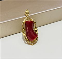 18K黄金钻石镶天然阿卡牛血红珊瑚蛋面吊坠