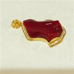 18K彩金钻石镶天然阿卡深牛血红珊瑚蛋面吊坠