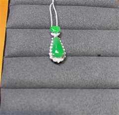 18K白金钻石镶满绿翡翠水滴吊坠