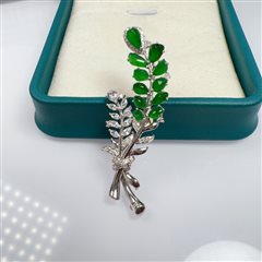 【节日专供】18K白金钻石镶满绿翡翠豆荚胸针/发夹两用